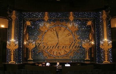 | The backdrop, featuring a large clock face, is studded with fibre optic stars. |