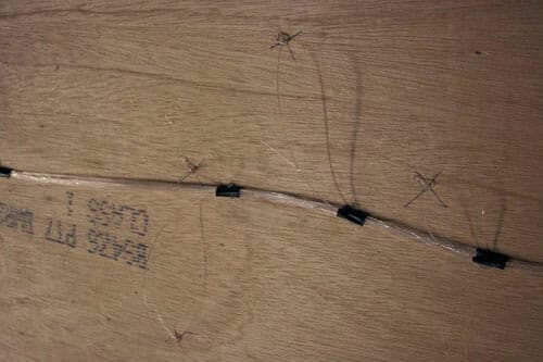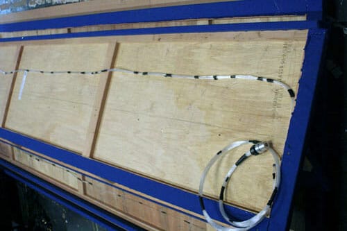 As so often with optical fibre, the actual installation process was simple enough – even if the scale of the job was a bit daunting. The fibre stars were to be installed in wooden “flats”, and it was simply a matter of drilling holes in the appropriate places and pushing fibres through from the back.