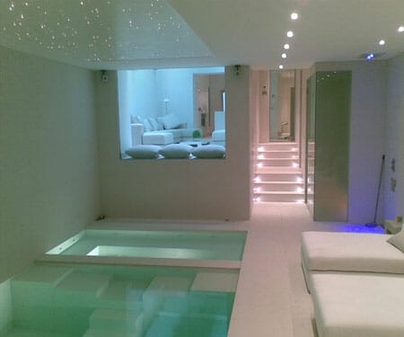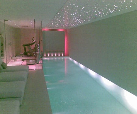 Starscape was approached by the London Basement Company, who had been asked to install a fibre optic star ceiling above the swimming pool in a prestigious project in London. The London Basement Company, as its name suggests, specialises in converting basements in existing buildings, or even creating a basement from scratch so as to add valuable new living space. Take a look at the impressive portfolio on their website and you’ll see that there’s nothing dark or gloomy about the new space that they create below their clients’ homes.