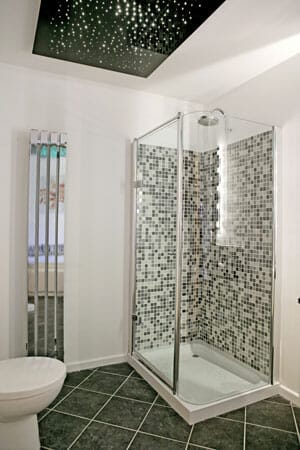 These two star ceiling panels in the showroom of AV Acoustics in Cannock are simply a variation on the basic prefabricated star panel as shown in Project 2.