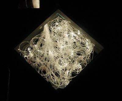 “I spent a while lacing the fibres in a random spread using 2 discrete holed fixing strips & then interweaved spaghetti-fashion the fibres individually,” he explained.